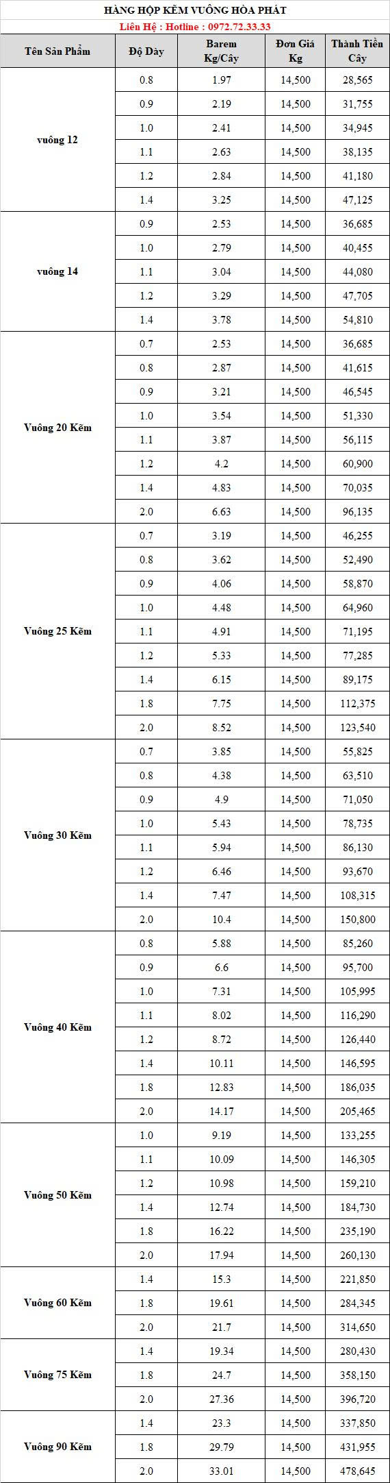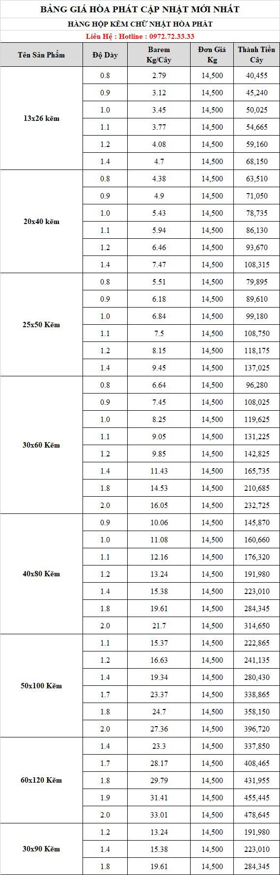 Bạn đang quan tâm đến bảng báo giá thép hộp mạ kẽm Hòa Phát mới nhất hôm nay?