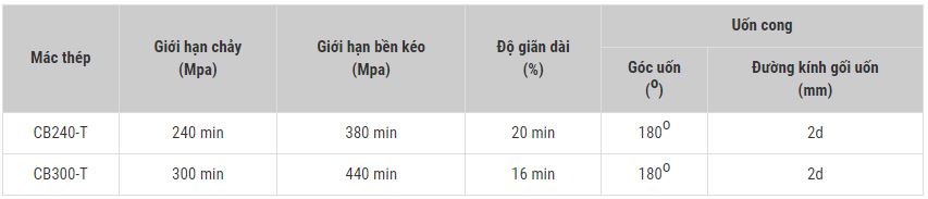 Đặc tính cơ lý (Theo bảng 5 & 6, TCVN 1651-1:2018)