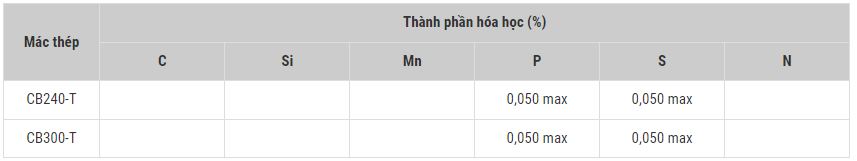 Thành phần hóa học (Theo bảng 3, TCVN 1651-1:2018)