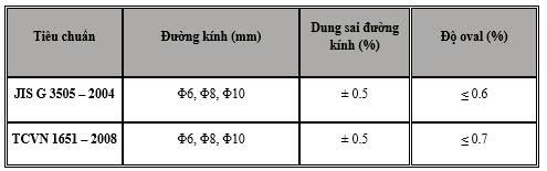 Bảng dung sai đường kính thép cuộn Hòa Phát