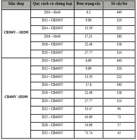 11. Bảng barem trọng lượng và quy cách bó thép thanh vằn Hòa Phát