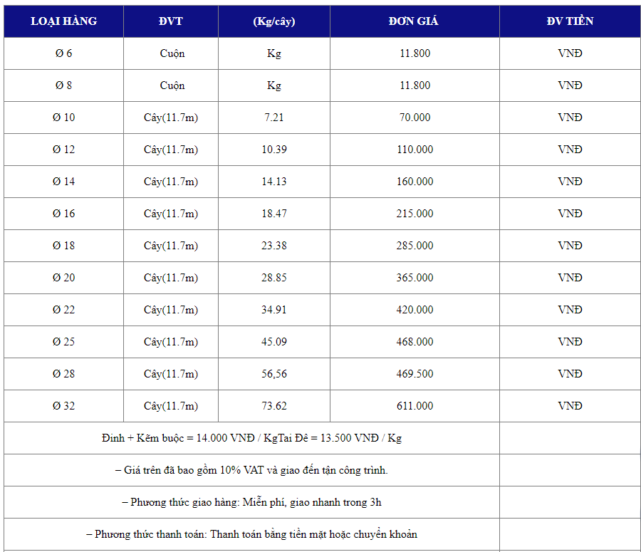 - Sắt thép được nhập trực tiếp tại nhà máy, đảm bảo chất lượng và đúng giá nhà máy.