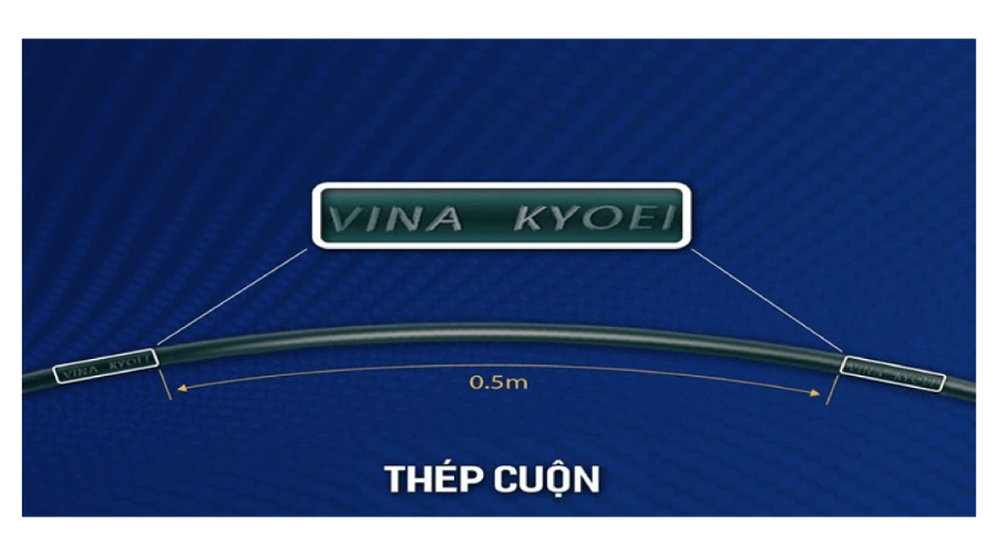 Logo và ký hiệu nhà sản xuất: Trên mỗi thanh thép, bạn sẽ thấy logo của VINA KYOEI được dập nổi rõ ràng.