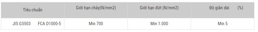 | Giới hạn bền | MPa | ≥ 1.000 |