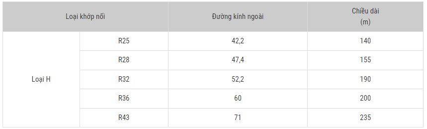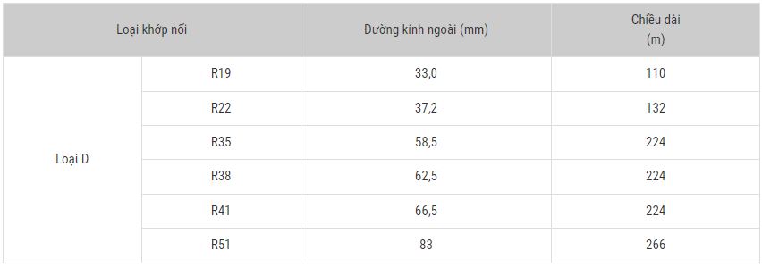 *Ghi chú: Có thể sản xuất kích thước và chiều dài khác bảng theo yêu cầu của khách hàng.