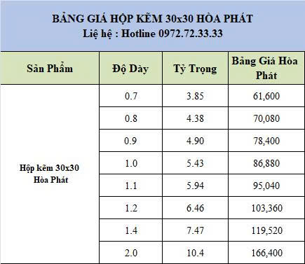 Lưu ý : Mức giá trên áp dụng cho thép hộp mạ kẽm, có độ bền cao và chống ăn mòn tốt.