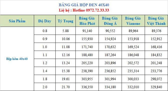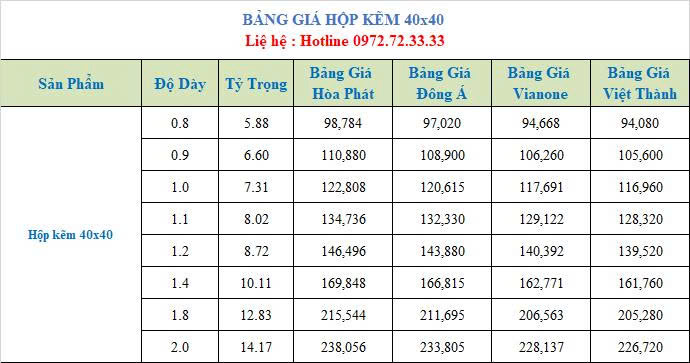 Giá sắt hộp 40x40 kẽm Hòa Phát, Đông Á, Vinaone, Việt Thành