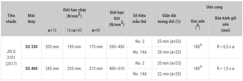 Theo JIS G 3101 : SS 300, SS 400 : P14~P40 ; Theo JIS G 3112 : SR 295; Theo JIS G 4051 : S4SC